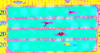 BEAN is based on an old swimmer's game. It's a regular old swimming race -- but if you finish with the bean, you lose! Swap lanes with other players to get rid of the bean.